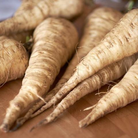 Panais à racine blanchâtre et allongée. La chair de nos panais est très fine, vous retrouverez les arômes de carotte sucrée.