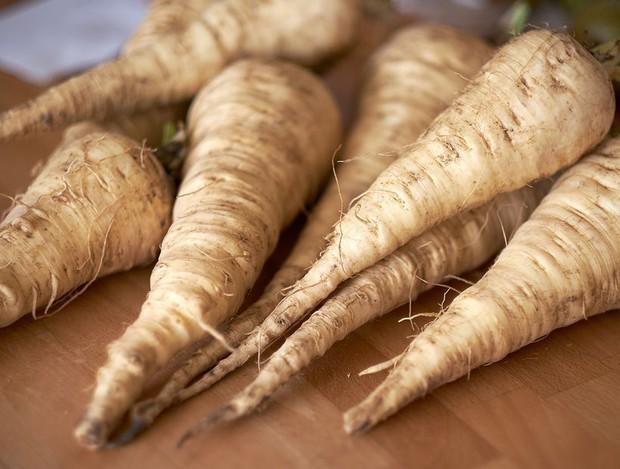 Panais à racine blanchâtre et allongée. La chair de nos panais est très fine, vous retrouverez les arômes de carotte sucrée.
